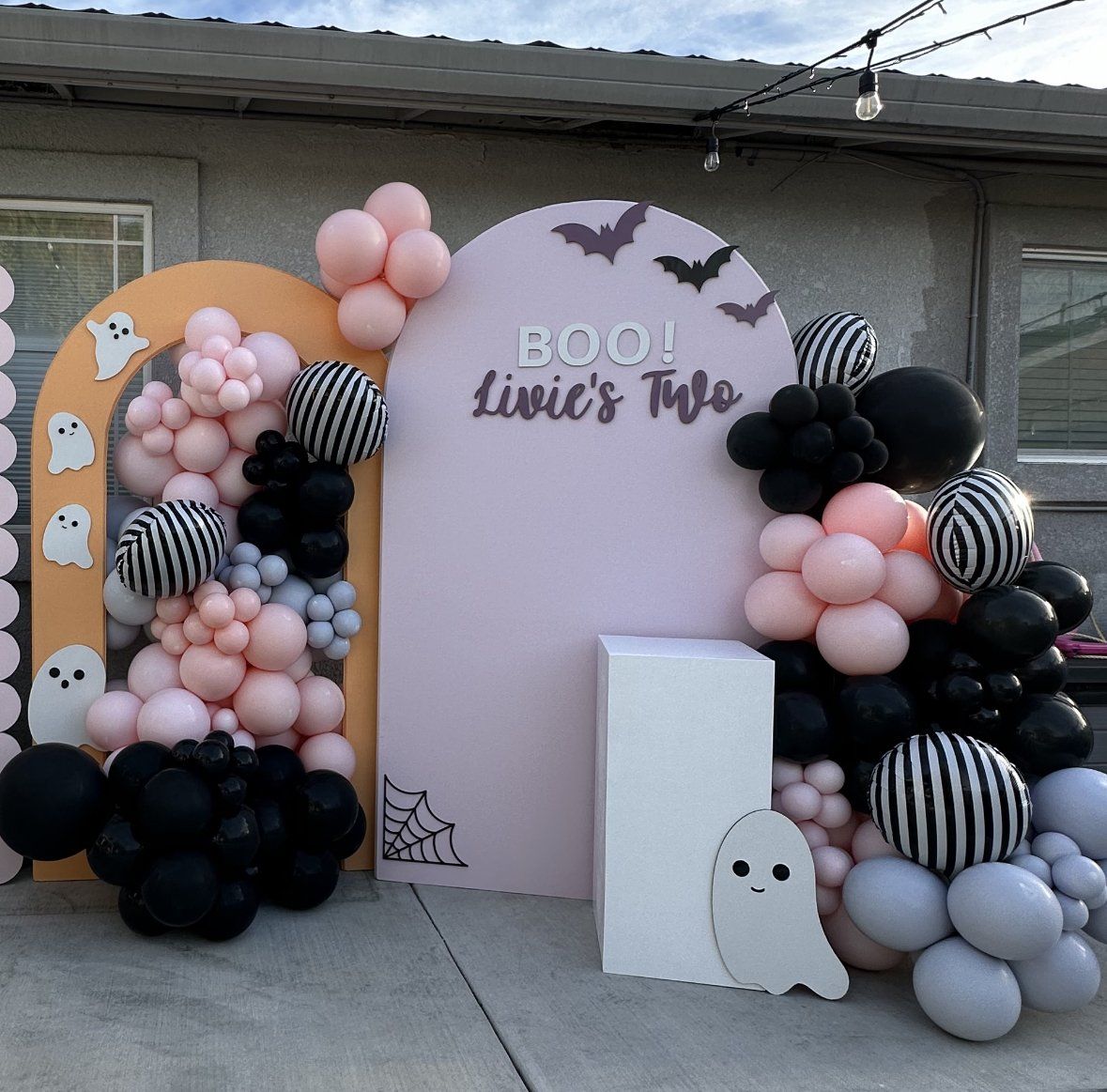 Let us know if you need custom decor like seen in the photos (All lettering, character cutouts, and balloon garland created by us)
